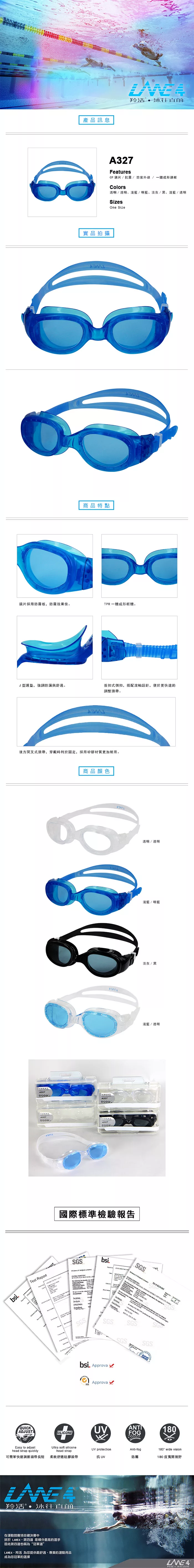 商品推薦:LANE4羚活成人舒適防霧泳鏡 A327透明-透明