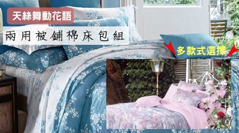 只要2,280元起(含運)即可享有原價最高4,580元天絲舞動花語兩用被鋪棉床包組:(A)雙人/(B)雙人加大,多款式選擇?