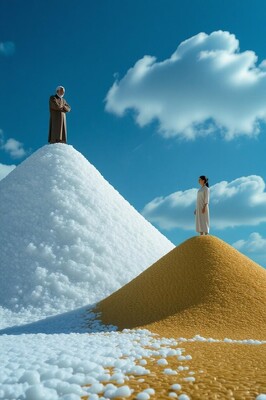 這種比喻極具文化隱喻性,將「經驗」(鹽)提升為權力象徵,將「日常生存」(米)貶為基礎層面。