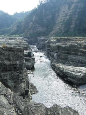 俯瞰峽谷,蜿蜒水流在層疊的河階溪床上奔騰,宛如遊龍~