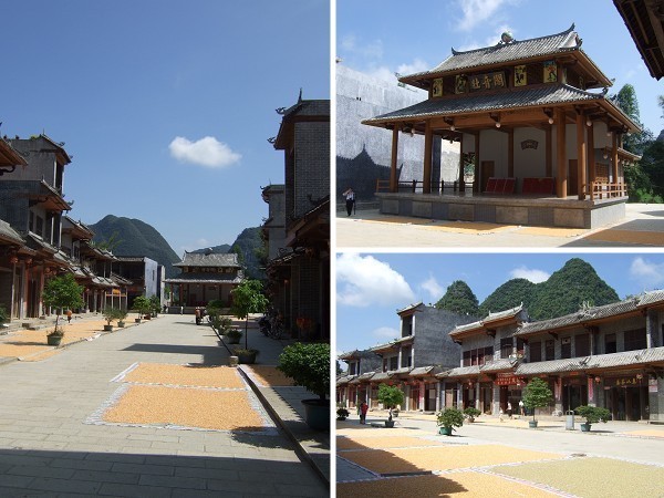 街道盡頭,一座新完工的戲台「壯音閣」與遠處的高山遙隔相對,其實長久以來,當地人一直保持唱山歌的習俗。平時,街頭巷尾、河邊樹下,大自然成了好歌者的舞台;每逢三月三,來自各地歌隊便會在戲台上對唱山歌,鄰村的居民也聞訊趕來參與,此時處處呈現著歡樂和諧的景象。