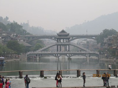 2013.10.29午餐在{裕源祥山莊}用餐後,還有2小時的路程,繼續趕路…前往素有{中國最美的小城}之譽與{畫鄉}之稱的【鳳凰古城】;途經{吉首}是湖南省最大的縣。在15:10到達購票處,票額148...