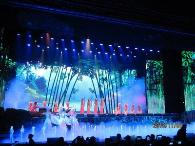 2013-11-01晚上看的{魅力湘西秀}很幸運的我們的座位安排在中區的中間...最佳視野表演前有圖畫{義賣}...價格合理就售出 我個人比較喜歡這幅ㄟ拍攝一下裝潢的古色古香滴場景 表演的...