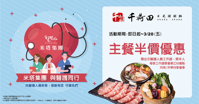米塔集團 感謝醫護有您真好! 向全體醫護致敬! 您挺台灣 我們挺您! 感謝有您 守護我們! 【防疫前線 感恩有您】 為感謝始終站在防疫第一線的醫護人員,米塔集團旗下9個指定品牌,推出...