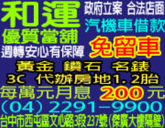 台中大肚區機車借錢,台中龍井區機車借錢,請撥22919900和運當舖,免留車