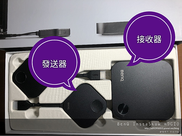 產品的包裝盒子透漏出「BenQ InstaShow WDC10」可將電腦設備由發送器串聯到接收器信息!