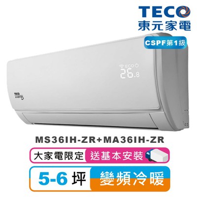 線上DM! 2019最大折扣!【TECO 東元】5-6坪一對一雅適變頻冷暖空調(MS36IH-ZR+MA36IH-ZR)限定活動