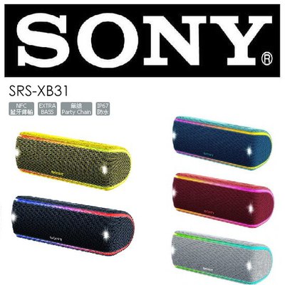 【本日刷卡購買商品折扣】SONY SRS-XB31 可攜式無線喇叭★(公司貨)★藍芽 防水 NFC-超實用居家用品