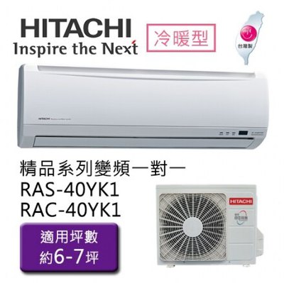 『HITACHI』☆ 日立 6-7坪變頻冷暖分離式冷氣RAC-40YK1/RAS-40YK1