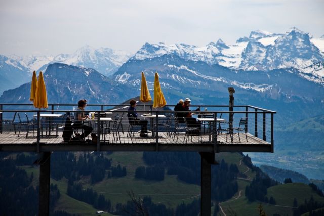 修特峰是瑞士中部伯恩阿爾卑斯山中的一座山峰,海拔2970米。其周圍有少女峰、鐵力士峰等著名山峰,是觀賞這些山峰的很好的觀景點。山頂建有觀景台和全景觀旋轉餐廳Piz Gloria,可乘纜車直達頂峰。007系列電影中的《鐵金剛勇破雪山堡》曾在Piz Gloria進行拍攝,中午我們就在群山環繞的旋轉餐廳享用美味的午餐。