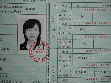 看到這張可怕的紙 我才發現 時間真是快阿 我還真不像考生呢(笑) 我要去考試咧 大頭照劉海真的很逼機(氣)