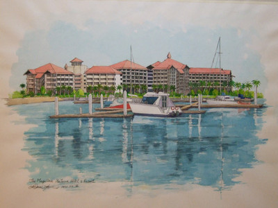 「麥哲倫旅館」 / 針筆淡彩 / 4K / 2010.02.14小年夜以6B鉛筆畫的底稿,並用針筆勾勒完成所有的線條,港內海水的倒影是在除夕的早上完成的麥哲倫旅館 ( THE MAGELLAN, SU...