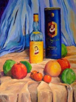 水果與酒瓶.....油彩.....10F這學期有四堂的靜物寫生,是學畫以來第一次用油彩畫靜物 ( 花卉除外 )。記得是在第二學期,是用粉蠟筆畫的靜物 ( 參考 粉蠟筆 相簿http://photo.p...