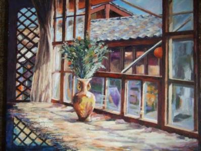 油畫...角落 一 ( 麗江 ).....油彩.....12 F閒來無事在逛 PCHOME 相簿集的時候,被 TERENCE 的這張照片給吸引住了---從屋外透進來的光線與它所造成的光影是那樣地、絲絲...