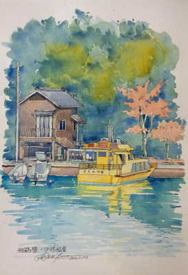 【海鷗號】伊根船屋旅行記憶 / 針筆.淡彩 / 38 x 26 cm / 2016.01.02