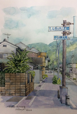 【鬼太郎街】旅遊記憶 / 針筆淡彩 / 19 x 26 cm / 2016.02.27