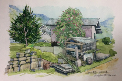 【三朝町的農舍】‧旅行的記憶 / 針筆.淡彩 / 26 x 38 cm / 2016.02.21就在旅館 (...