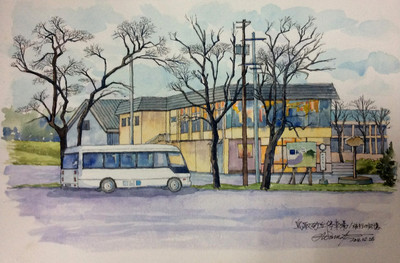 【松山菸廠】/ 針筆.淡彩 / 26 x 38 cm / 2016.02.14