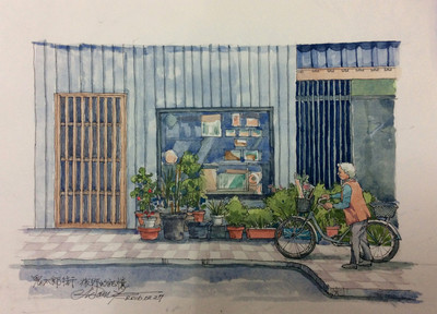 【境港街景】旅遊記憶 / 針筆淡彩 / 19 x 26 cm / 2016.02.28
