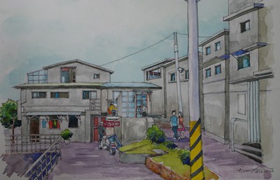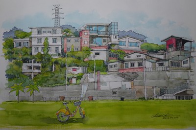 【寶藏巖】寶藏巖系列Ⅰ / 針筆淡彩 / 26 x 38 cm /