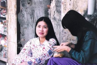 坐在家門前的路旁聊天的長髮女孩 ( 用 70/200 mm 的長鏡頭偷拍的,所以女孩的眼神顯得安祥自在,如詩般...