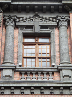 二樓有4根希臘式石柱,屬於愛奧尼克式柱