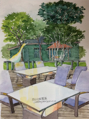 針筆淡彩 --- 鳥取砂丘駐車場, (持久液)