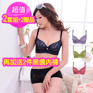 【安吉絲】素雅美型深V曲線超包覆內衣組(超值2套+2件組)