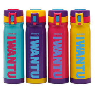 【BOSHENG】鉑盛彈跳雙層真空保溫杯(紅色 / 藍色 / 紫色 / 鵝黃色)
