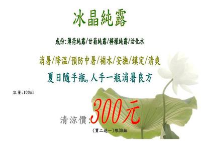 何謂"純露"?純露為萃取精油的蒸餾過程中所蒸餾出來的“蒸餾水”它沒有精油那麼強大的能量,不能直接使用在皮膚上,但仍具有較精油溫和的相同功效,連小貝比都能使用,可用做:化妝水、順髮露、鬍後水 的功用,更...