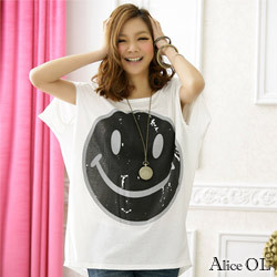 【Alice OL】笑臉圖樣圓領寬鬆棉短T(共三色)