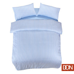 本組《DON經典爵色-藍》兩用被床包組,整組以普普直條紋搭配,活潑的色調簡單中帶出普普風格;整組採用精梳純棉斜紋布製成,手感細柔厚實,伴您舒適入眠。在床包使用超緊密的上下ㄇ型鬆緊帶,別於一般市面上的四角鬆緊帶,更牢固不易滑動;而在床組的車縫上也不馬虎,使用超密針距,每一英吋有高達10個車縫針距,不僅細膩更加耐用;被套四周更是貼心的設計了綁繩,讓您在使用上能更加的舒適。搭配冬夏舖棉兩用被套,一年四季都合用,在微涼的秋季和寒冷的冬季時節,可加入蠶絲被、羽絨被等各式被胎,以增加保暖度,而溫暖的春季和炎熱的夏季,則可直接當涼被使用,避免在冷氣房或吹風扇休憩時著涼,更實用更超值!新品上市不手軟,館長就是要給您專賣的頂級品質享受,卻花不到一半專櫃價,平民消費,可分期0利率,還免運費送到府上,好康不等人,限量搶購要快了!
