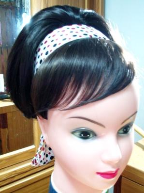 試作日式包頭,這次的髮綿只用一個,所以看起來比較沒有這麼立體.
