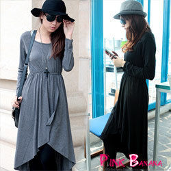 【Pink Banana】優雅魅力˙收腰綁帶打褶洋裝(共兩色) 收腰設計超好看 自然打褶優雅滿分 素雅魅力好簡約 非常氣質的美款
