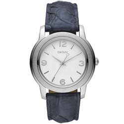 DKNY 簡潔魅力中性時尚腕錶-銀/藍錶帶/37mm