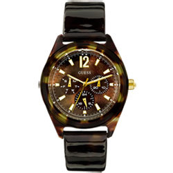 GUESS 迷你序曲腕錶(皮帶玳瑁) 夜光時標、復古外框 奢華玳瑁紋、經眼三眼視窗 亮皮革點綴陪襯、流露魅力色彩