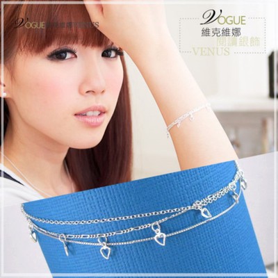 上班族省錢大作戰 心得【維克維娜】秀氣質感。細緻愛心多層次三鍊手鍊。925純銀手鍊
