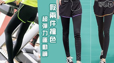春節送禮推薦 破盤假兩件撞色超彈力運動褲-