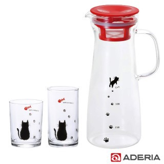 【團購熱門產品】【ADERIA】日本進口貓咪耐熱玻璃把手冷水杯壺-三入組(900ml-紅+220ML-1+260ML-1)破盤 省錢達人好康活動