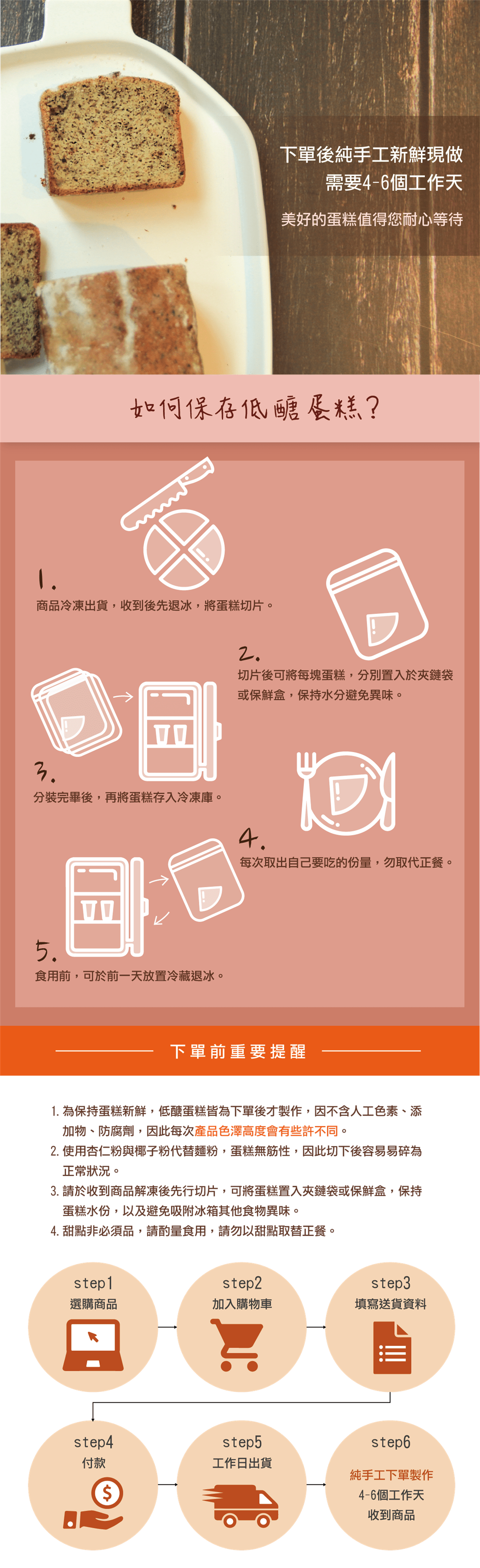 蛋糕為手工製作,商品為預購商品,集單後會依訂單編號出貨。