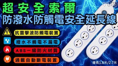 【生日禮物介紹】超安全防潑水防觸電安全延長線 2.7M-到貨付款