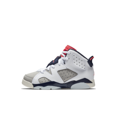 Air Jordan Retro 6 學齡前小童鞋款採用高級皮革搭配沖孔,兼具時尚造型和絕佳透氣機能。