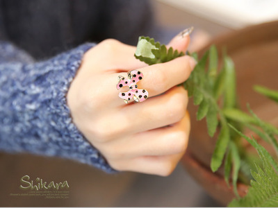 | 《ZA871》 撞色的小圓點讓甜美的蝴蝶結戒指,
