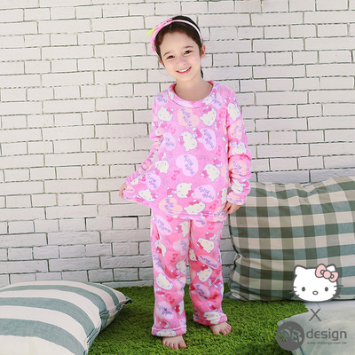 0306新品 HELLOKITTY極細緻柔膚珊瑚絨~愛心滿版童套裝 好像還不錯喔!!