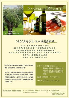 O&CO美好生活 地中海創意料理 2009,象徵頂級橄欖油的美好年份! 溫柔而規律的春雨輕吻撫愛,瑩白橄欖花綻放豐美姿態; 夏日陽光慷慨灑落一地澄黃,橄欖青青幼實靜靜滋養; 秋風起,為地...