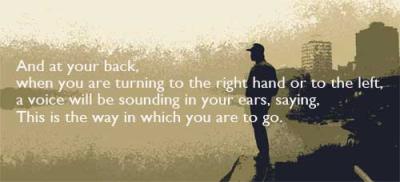 你或向左、或向右、你必聽見後邊有聲音說、這是正路、要行在其間。
