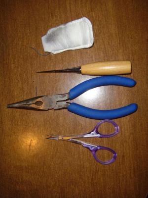 我需要大家幫我一個忙,請大家自行準備一些工具。這樣我就不需要從美國扛回去了。 1. 3吋跟5吋的長針。(買的時候注意,後面的針孔不要太大) 2. 尖嘴鉗一隻。 3.很好剪的小剪刀...