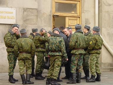 黃昏的時候,看到這些馬上要去吃飯的衛兵,他們呆在克林姆林宮大墻裏面。每月的薪水是不到50美元