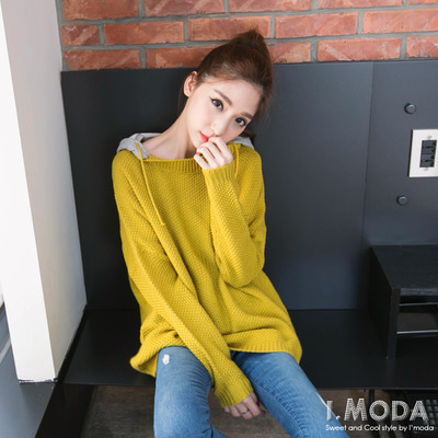 服裝推薦OB嚴選-清新休閒~可拆式連帽口袋落肩針織上衣.3色