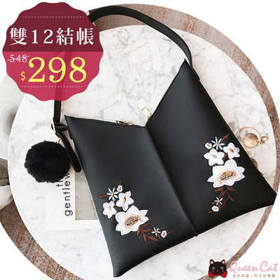 【本日限時刷卡折扣】(現貨) 附毛球.刺繡花卉V型開口肩背包.ZZETD-342 網路熱賣商品精選